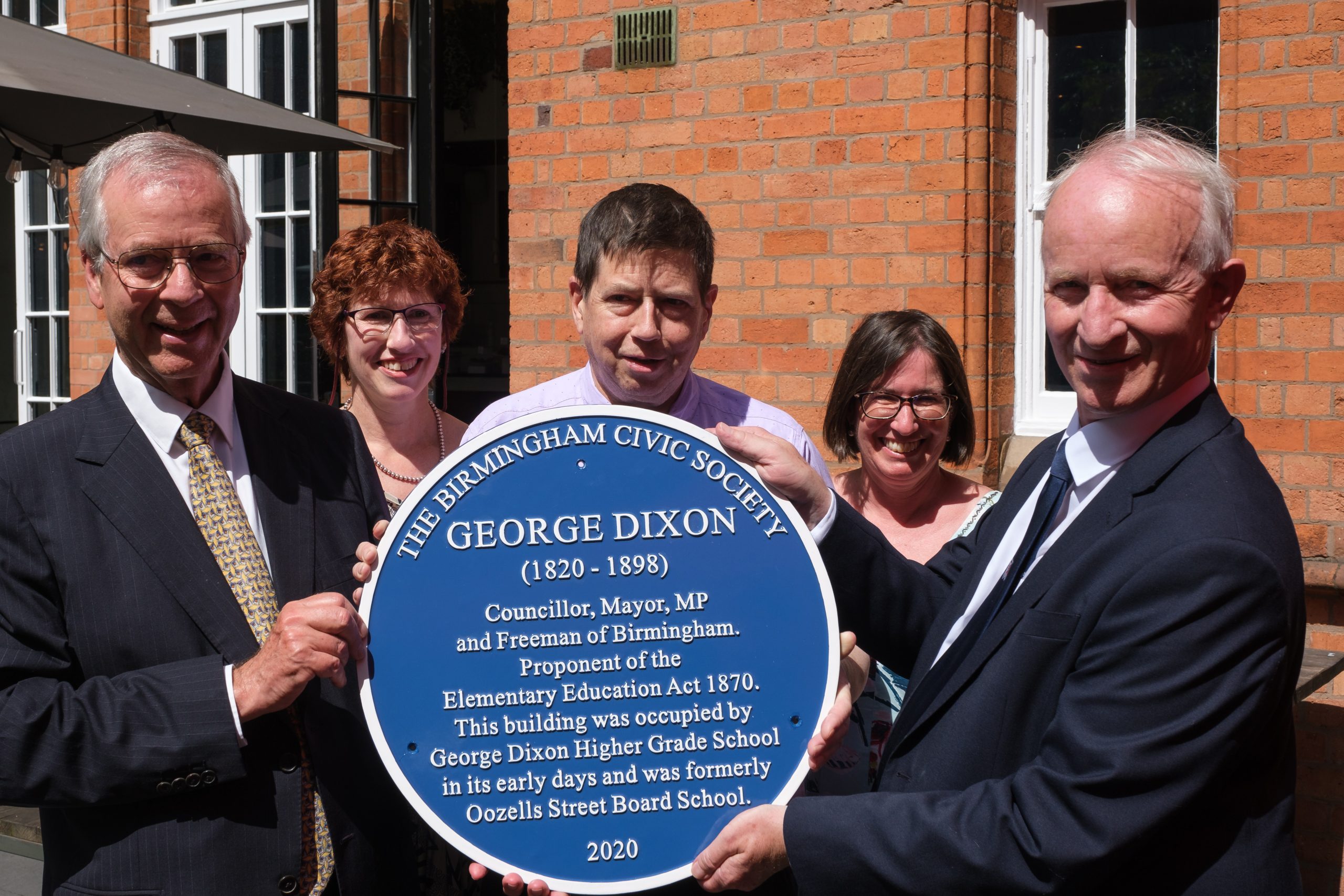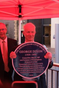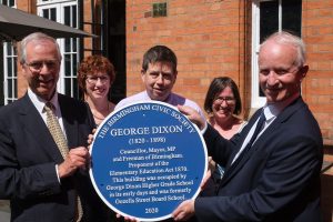 On Friday 16th July a Blue Plaque to George Dixon – former Birmingham councillor, MP, Mayor and a Freeman of the City – was unveiled in a special event, postponed from July 2020 and limited to 30 guests under prevailing guidelines in 2021.