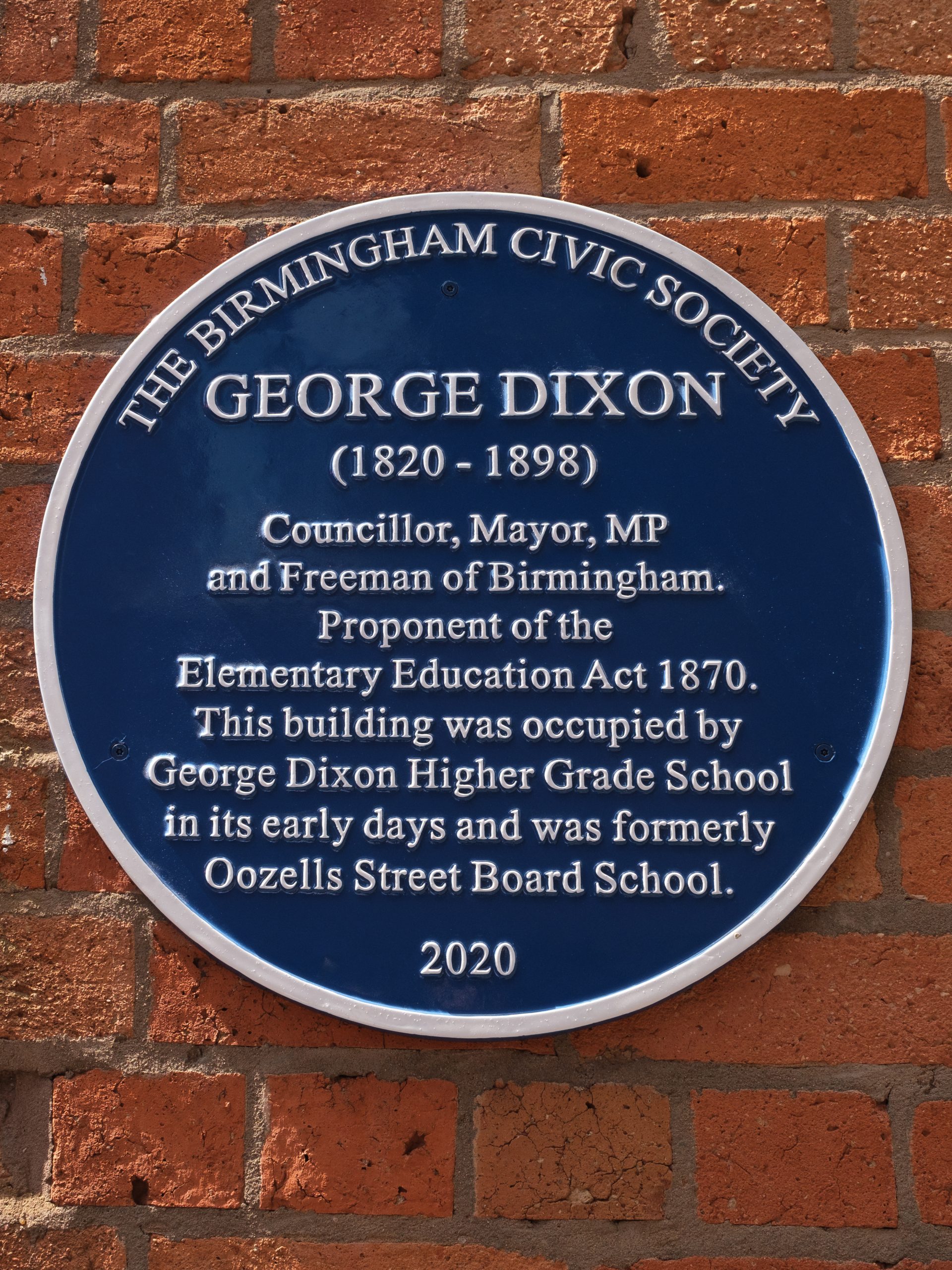 Birmingham Civic Society awards Blue Plaques to individuals who have achieved distinction – through excelling in their work or making a significant contribution to our city. Undoubtedly, George Dixon was a remarkable man and his endeavours in making education accessible to all children in Birmingham and the nation are truly worthy of this Blue Plaque.