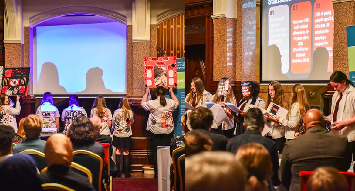 “The judges also agreed that Birmingham Newman University’s generous donation of prize money and project support would take this project and presentation to another level. We wish King Edwards VI Northfield School for Girls every success with their ‘Drop the Knife’ project and look forward to seeing the finished article in full swing.”