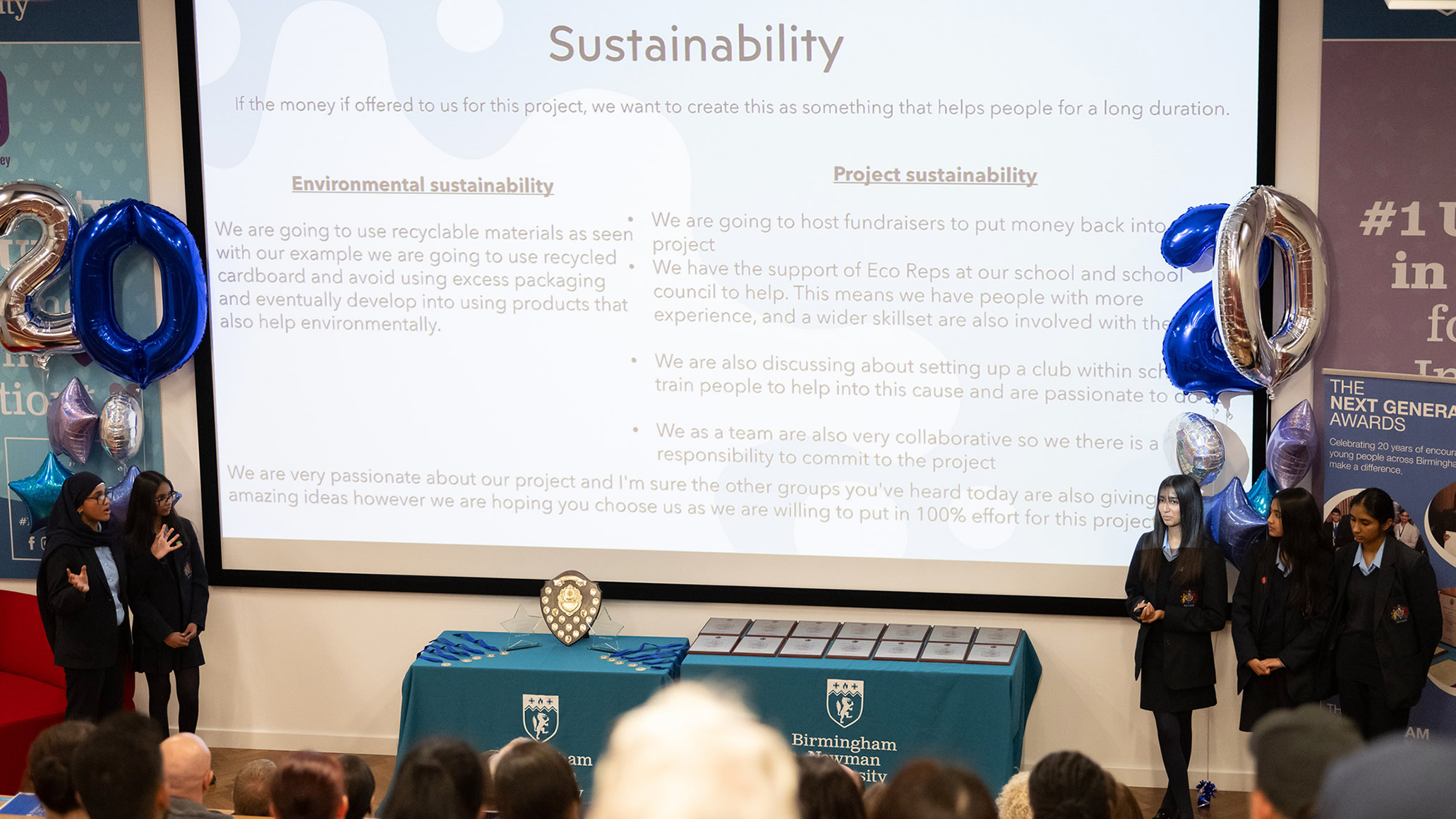 The strongest team is selected by a panel of judges at our finals each October and is presented with a shield and a check for up to £1500 (courtesy of our sponsors Birmingham Newman University) by the Lord Mayor of Birmingham to put their project into action with mentoring support.
